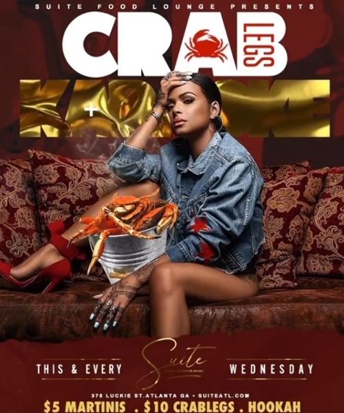 Experience the ultimate midweek indulgence at Suite Food Lounge with our exclusive “Crab Legs King Kato” event, held every Wednesday. Elevate your evening with our specially priced delights, featuring $5 Martinis to smooth out your week, and $10 Crab Legs to satisfy your seafood cravings. Immerse yourself in the relaxed ambiance of our lounge and enjoy the variety of Hookah flavors we offer.
